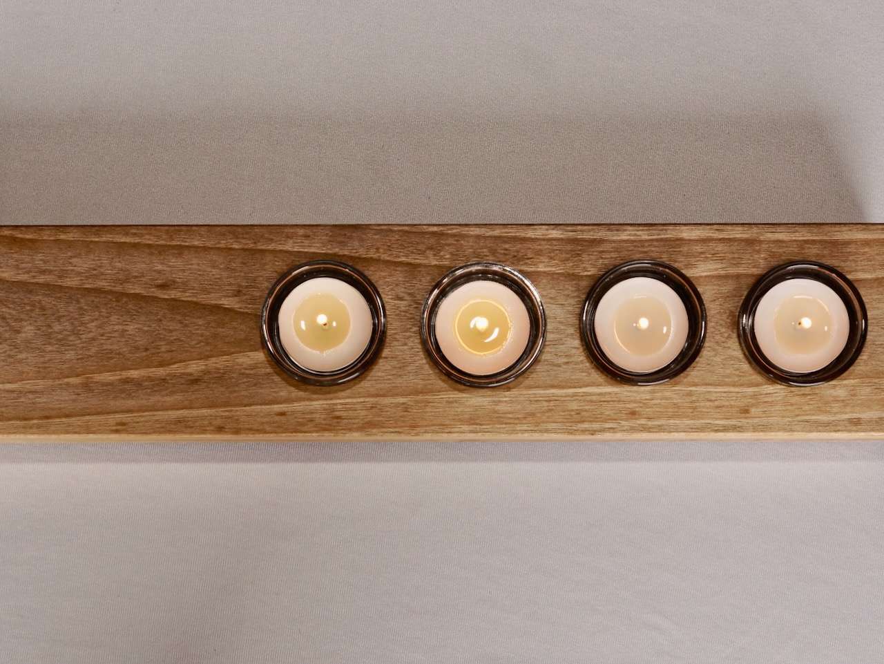 - Platz für 4 Teelichter in einer Reihe – ideal auch als moderner Adventskranz