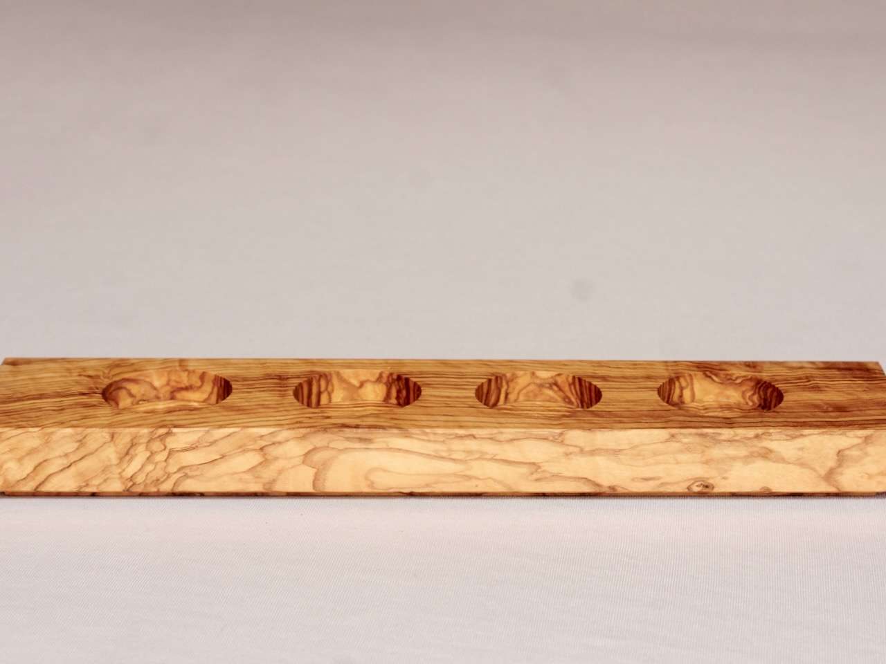 Die vier Bohrungen mit 50 mm Durchmesser sind exakt auf die mitgelieferten Glashalter abgestimmt. Handelsübliche Teelichter bis ca. 40 mm Durchmesser passen perfekt hinein. Die klaren Gläser lassen das Kerzenlicht weich nach oben leuchten und bringen die charakteristische Maserung des Olivenholzes wunderschön zur Geltung. Jeder Teelichthalter aus Olivenholz wird von Hand gefertigt und mit hochwertigem Kräuterfirnis geölt – für eine samtige Oberfläche, die das Holz schützt und seine warmen Gold- und Brauntöne betont.